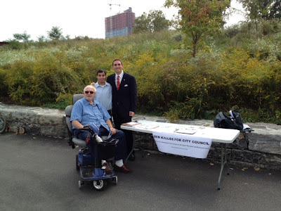 Mr. Kallos was here for Roosevelt Island Fall For Arts meeting and greeting residents including Roosevelt Island Disabled Association President Jim Bates